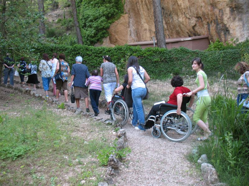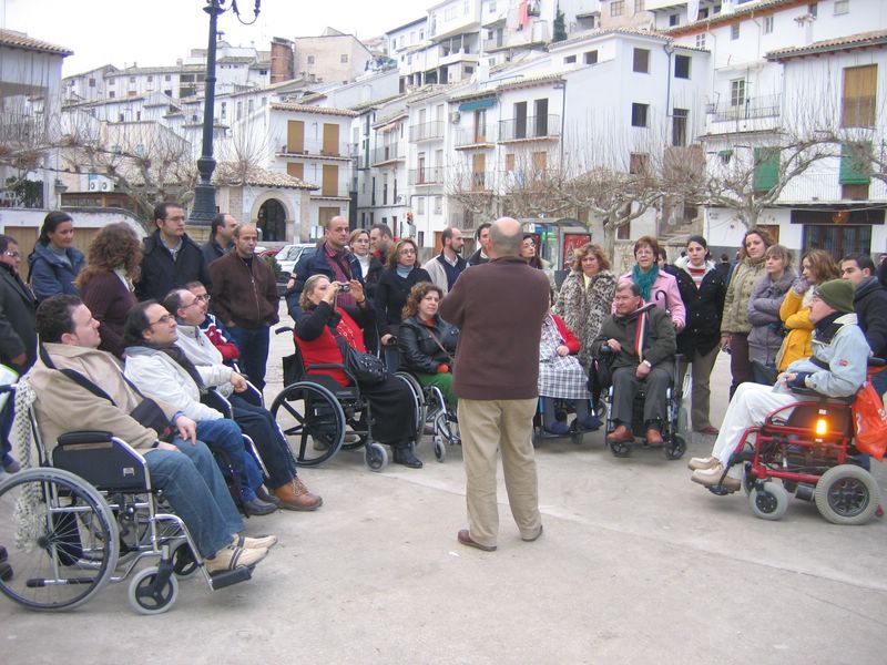Cuando una actividad turística se desarrolla en un espacio abierto, y, en el caso de que este no sea del todo accesible, será necesario prever unos itinerarios accesibles alternativos, para que las personas con movilidad reducida no tengan dificultades para llegar. Recomendar o habilitar que las personas con discapacidad auditiva vayan acompañadas por tantos interpretes de signos como asistentes vayan o bien tendrán que realizar la actividad en grupo, si es que la entidad no puede dar cobertura a esta circunstancia con interpretes de la lengua de signos o con sistemas de subtitulación, si la actividad permitiera la misma. Con las personas con discapacidad visual y discapacidad intelectual, si no se les pudiera apoyar desde la organización, deberán igualmente ir acompañadas por una persona externa a la organización.